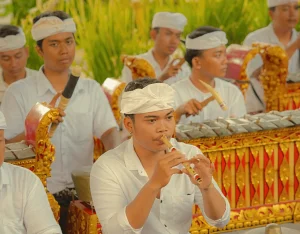 Dancers move with refined grace before shifting into bold, commanding gestures embodying the cultural principle that softness and strength must coexist. The choreography highlights the delicate interplay of these energies, allowing audiences to see how Balinese philosophy is woven into each movement.